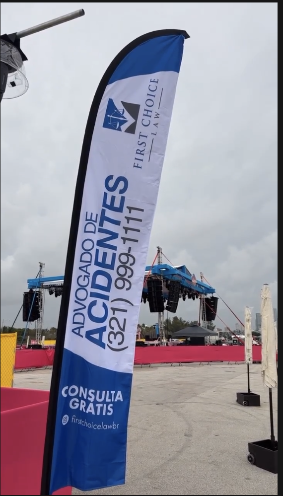 - 4 bandeiras gigantes de 10 pés, estrategicamente posicionadas, garantindo visibilidade e reforçando nossa presença com elegância e impacto visual.